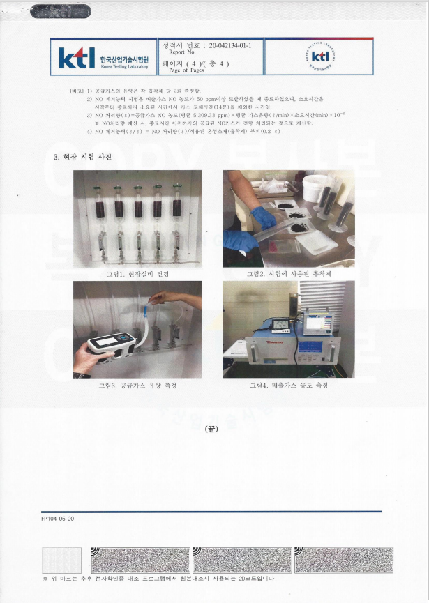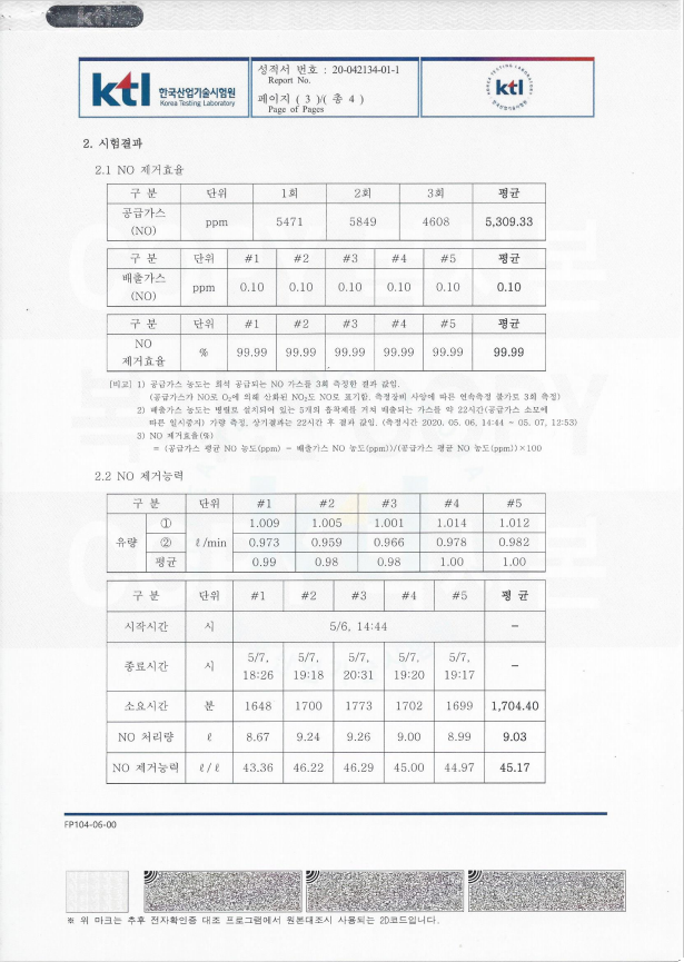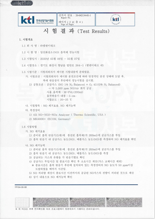 강력한NO흡착제/KTL시험 성적서