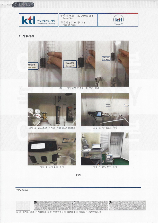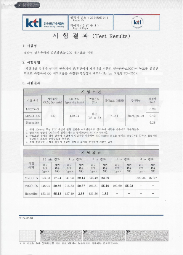 KTL 시험 성적서 - 내습성 CO 산화 촉매제 with moisture